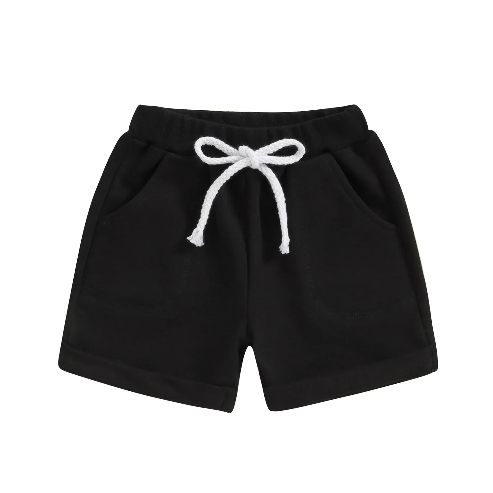 Designed with convenience in mind, these shorts boast an elastic waistband with a drawstring, ensuring a secure and adjustable fit for your baby. The solid colour and rolled hem design add a touch of simplicity and versatility to their outfit.?